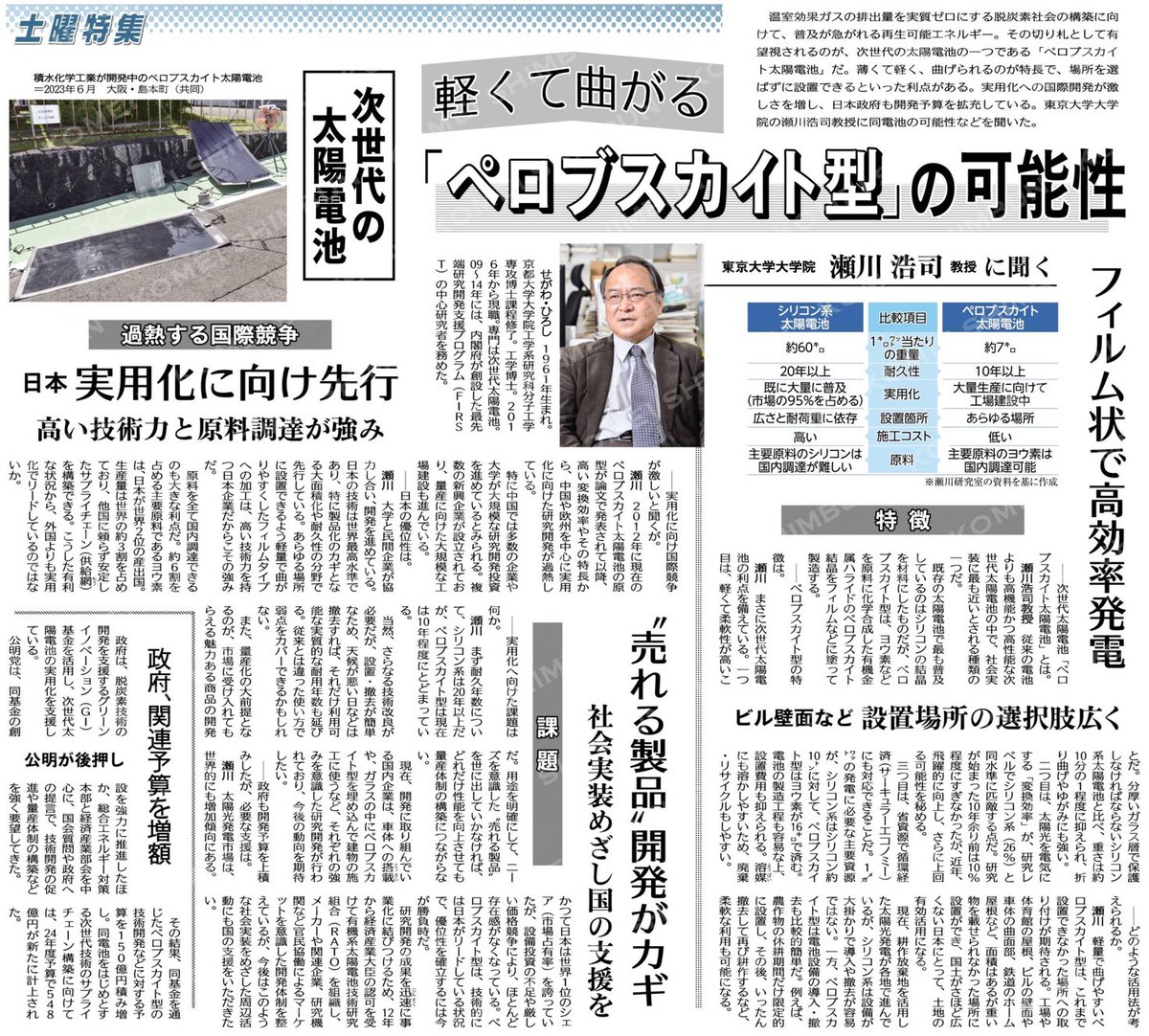 軽くて曲がる次世代の太陽電池「ペロブスカイト型」の可能性/東京大学大学院 瀬川浩司教授に聞く #公明新聞電子版 2024年04月20日付 www.komei.or.jp/newspaper-app/