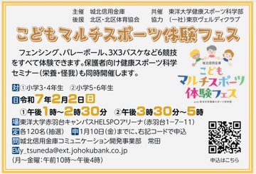 お知らせ 来年2/2(日)に東洋大学赤羽台キャンパスHELSPOアリーナにて「こどもマルチスポーツ体験フェス」開催 フェンシング、バレーボール、3X3バスケなど6競技全てが体験できるそうです!! \参加申込はこちら/ https://docs.google.com/forms/d/e/1FAIpQLScwJ5dF-VHdj3Hs2KYX3XFiFqh8Jy_WmdazIo-n0IPXz-oBlQ/viewform…