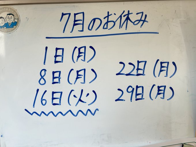本日・14時30分〜23時まで営業7月の営業日程です!!15日(月)海の日は振り替え営業日に変わります‼︎16日(火)がお休みとなりますので宜しくお願いします今日も猛暑日です、、しっかり涼しくして水分..