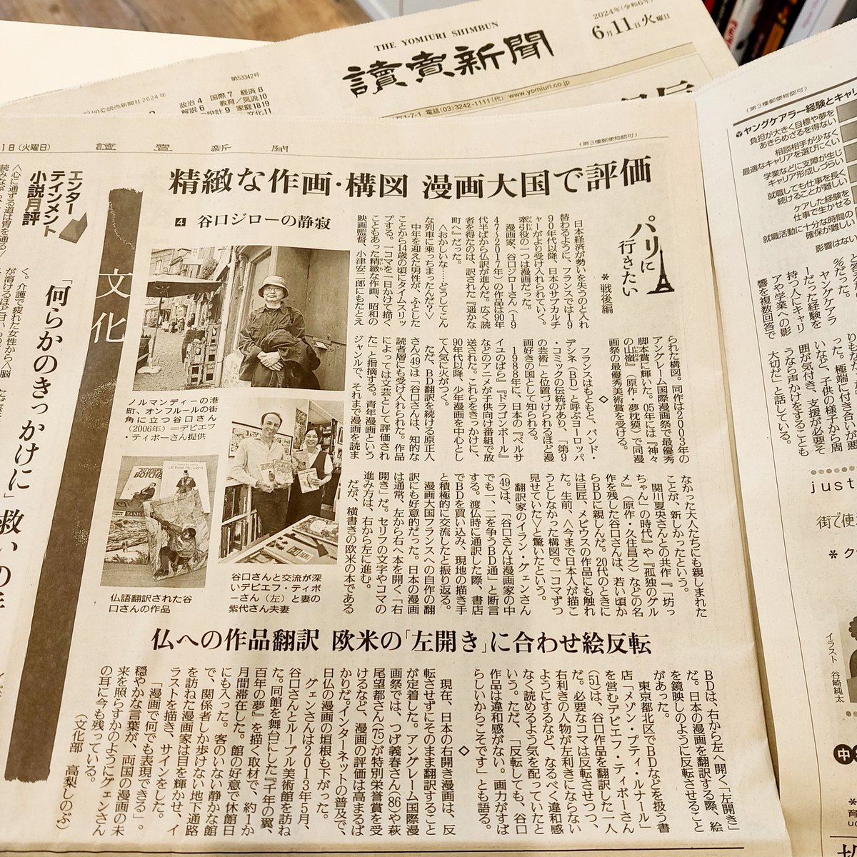 昨日の読売新聞「パリに行きたい−戦後編−」で漫画家谷口ジローさんについて取材を受けました日仏の架け橋になっていた谷口さんに感謝しています。もう一度作品、読み直そうかなあ
