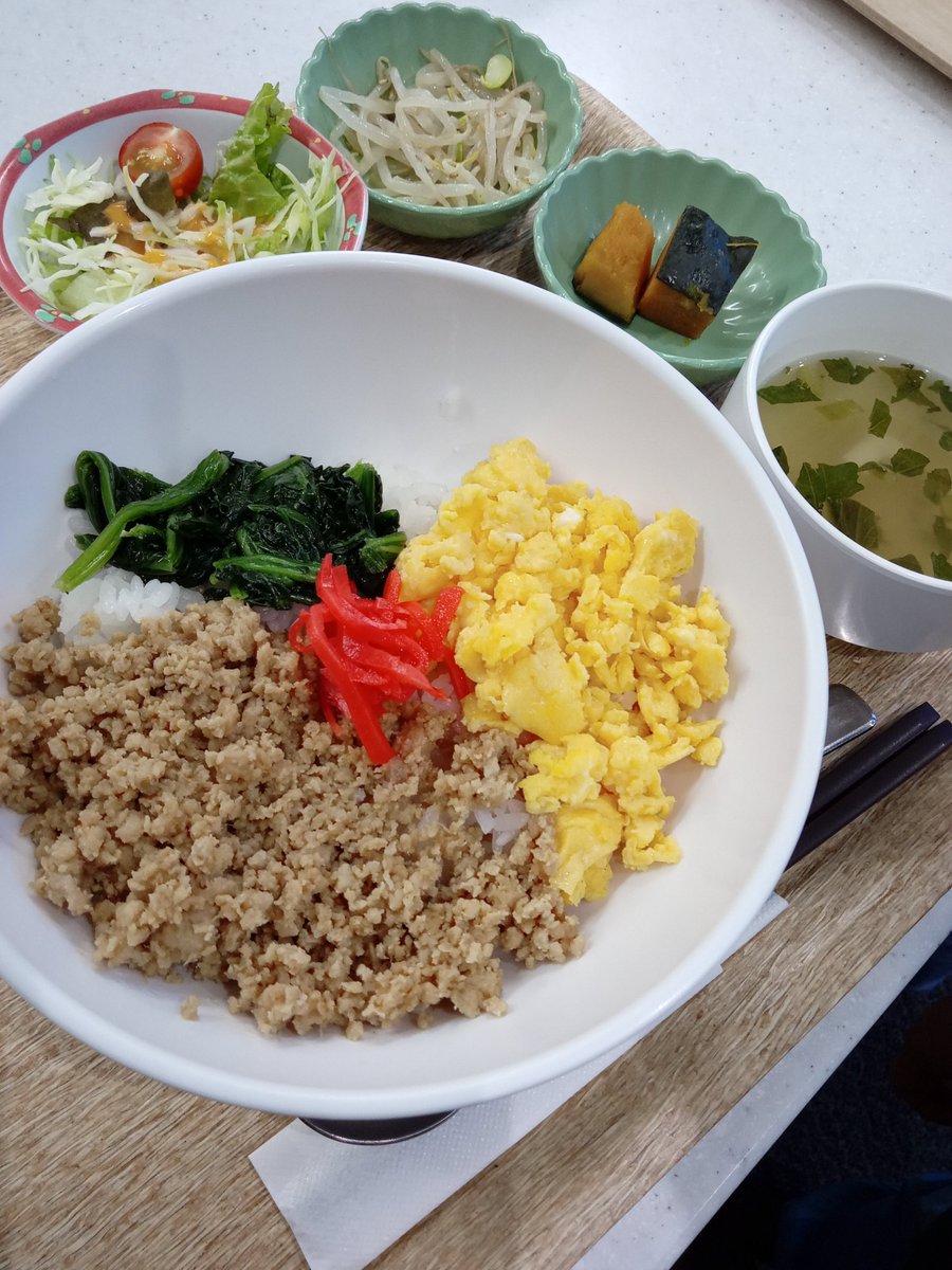 おはようございます本日の日替わりランチ三色鶏そぼろ丼です本日は30度近く気温が上がるようですね冷たいドリンクでひと休みなんていかがでしょう??皆さまのご来店お待ちしております#十条#日替わりランチ