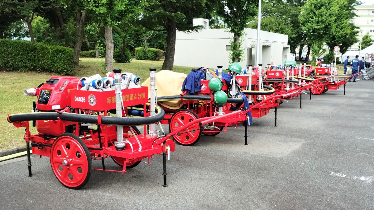 6月9日浮間水再生センターで令和6年度赤羽消防団消防操法大会(可搬ポンプ操法審査会)が行われました