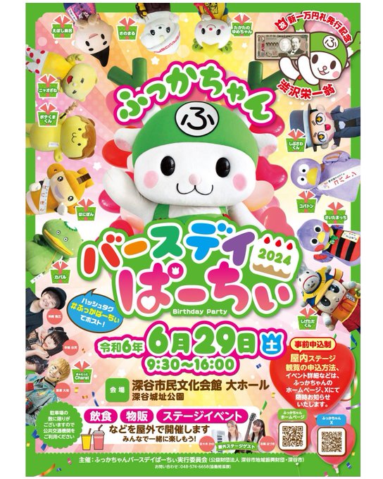 埼玉県深谷市ふっかちゃんぱーちぃ東京北区のしぶさわくんも参加予定#渋沢栄一#新一万円札#ふっかちゃん#しぶさわくん