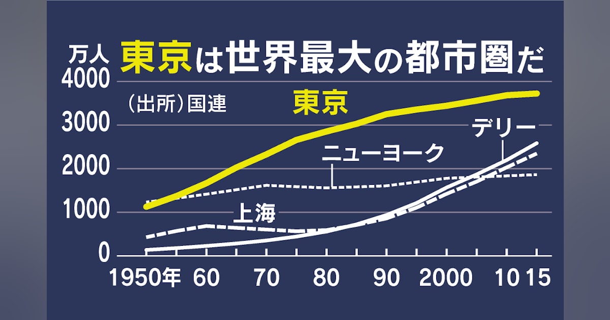 世界最大の都市圏「グレーター東京」人口3700万人、鉄道網が広げる:日本経済新聞