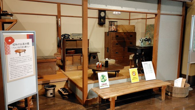 【常設展示一部変更】 2階常設展示を一部展示替えしました。 昭和の暮らし再現では、昭和30年代の三人で暮らす家族のお茶の間を舞台に展示しています。 このほか家電の「三種の神器」、「3C」など当時の家電製品も合わせて紹介しています。