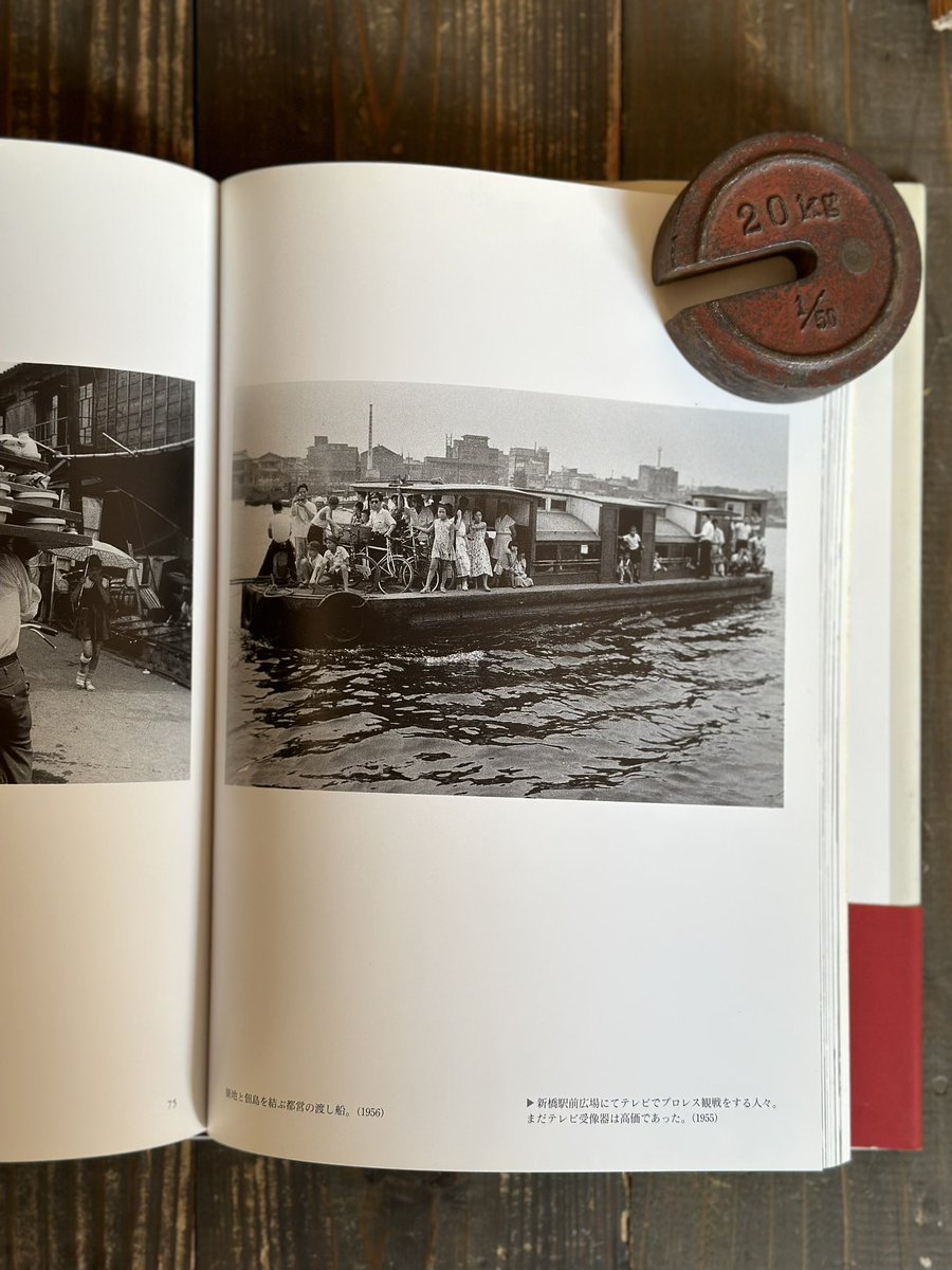 1956年佃の渡しの写真には、たくさんの人が乗船していているが誰も鼻や口を押さえていない。