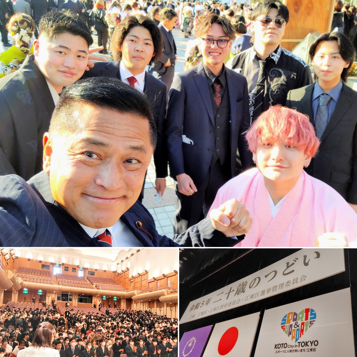 🔴#江東区 4057人 成人の日👫 おめでとうございます🍓 自分の信じる道を… 応援します‼️ (写真は地元八中卒の皆様と) #深川8中 #深川八中 🟡#江東区 #健康診断 40歳以上…受診は 無料です‼️ 実施期間は 2月20日まで #おおやね匠議員 大矢根議員 #江東区議会議員 大矢根