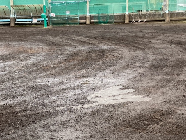 R5.1/27(金) 15:30現在 亀戸野球場B面 内野面の日陰部分は凹凸が激しく、日向部分は土がぬかるんでいる箇所があります。今週、土日のご利用は大変厳しいと思います。