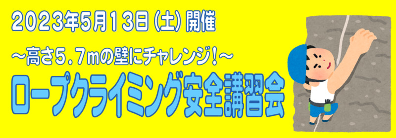 5/13(土)開催ロープクライミング安全講習会の参加者募集中です。