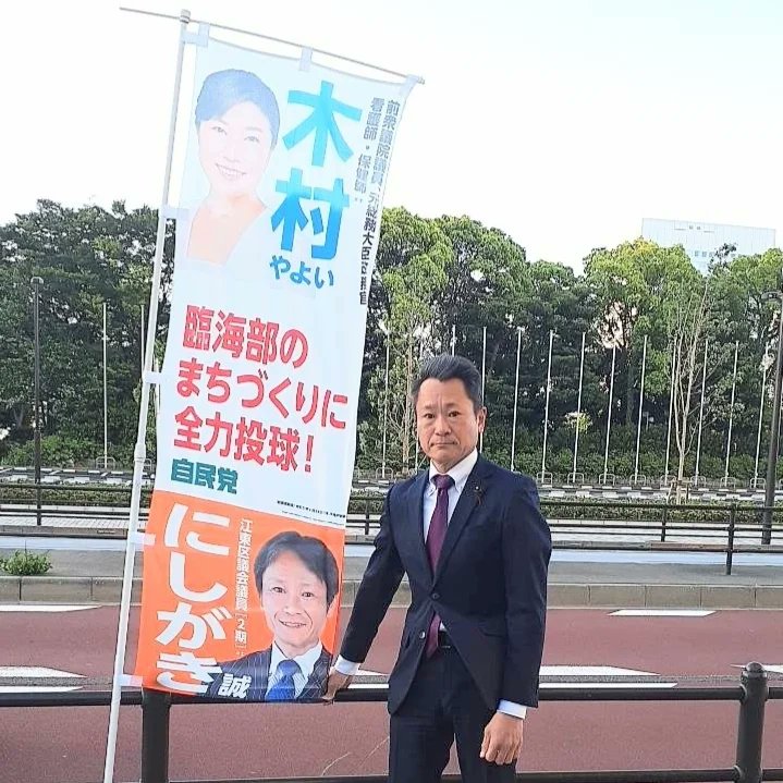 今日からは先日の区長選挙で初当選された前自民党衆議院議員「木村やよい」さんとのノボリでご挨拶です✨