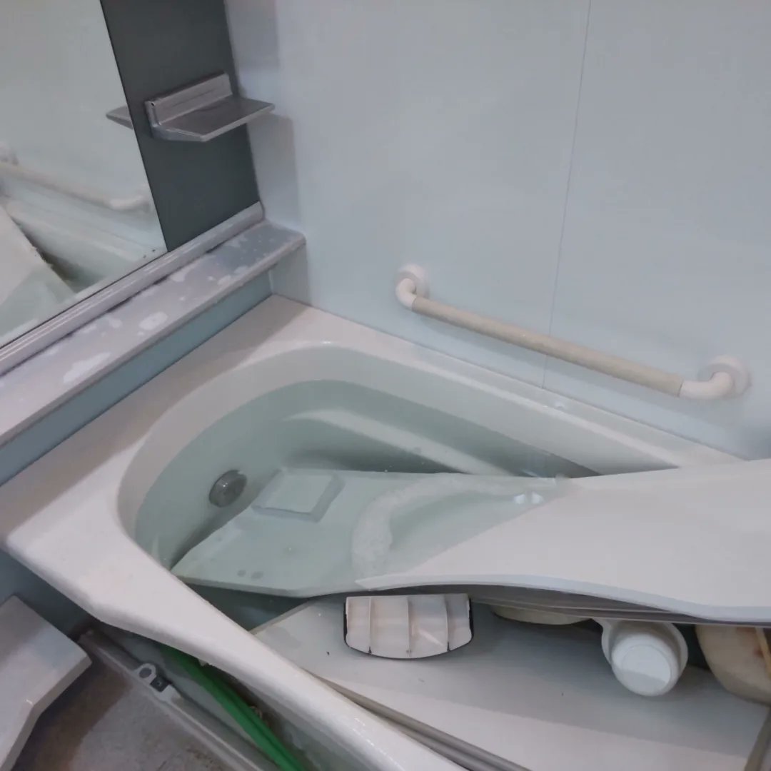 浴槽に水を張って細かい部品を沈め、洗濯槽クリーナーで浸けおきも👍️