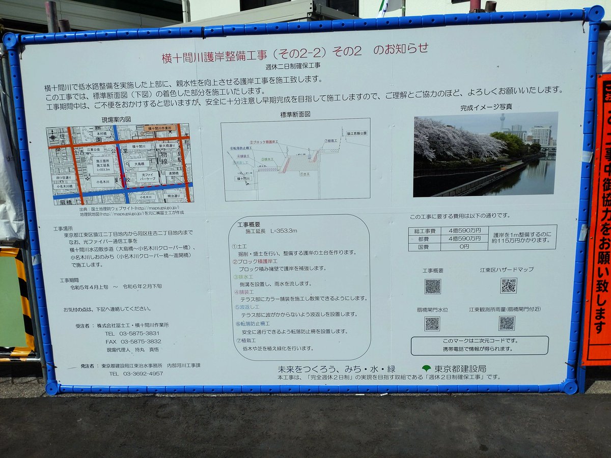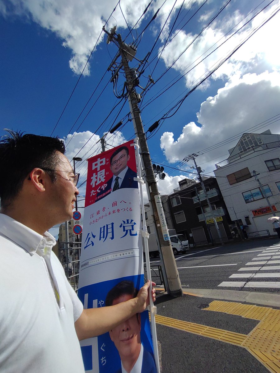 今朝は #住吉駅 近くの交差点にてあいさつ活動からスタートしました🚩 現在、 #横十間川 護岸整備工事が行われておりますが、地域の皆さまから早期整備の要望をいただいています。 細田都議と連携し引き続き推進していきます! #朝活