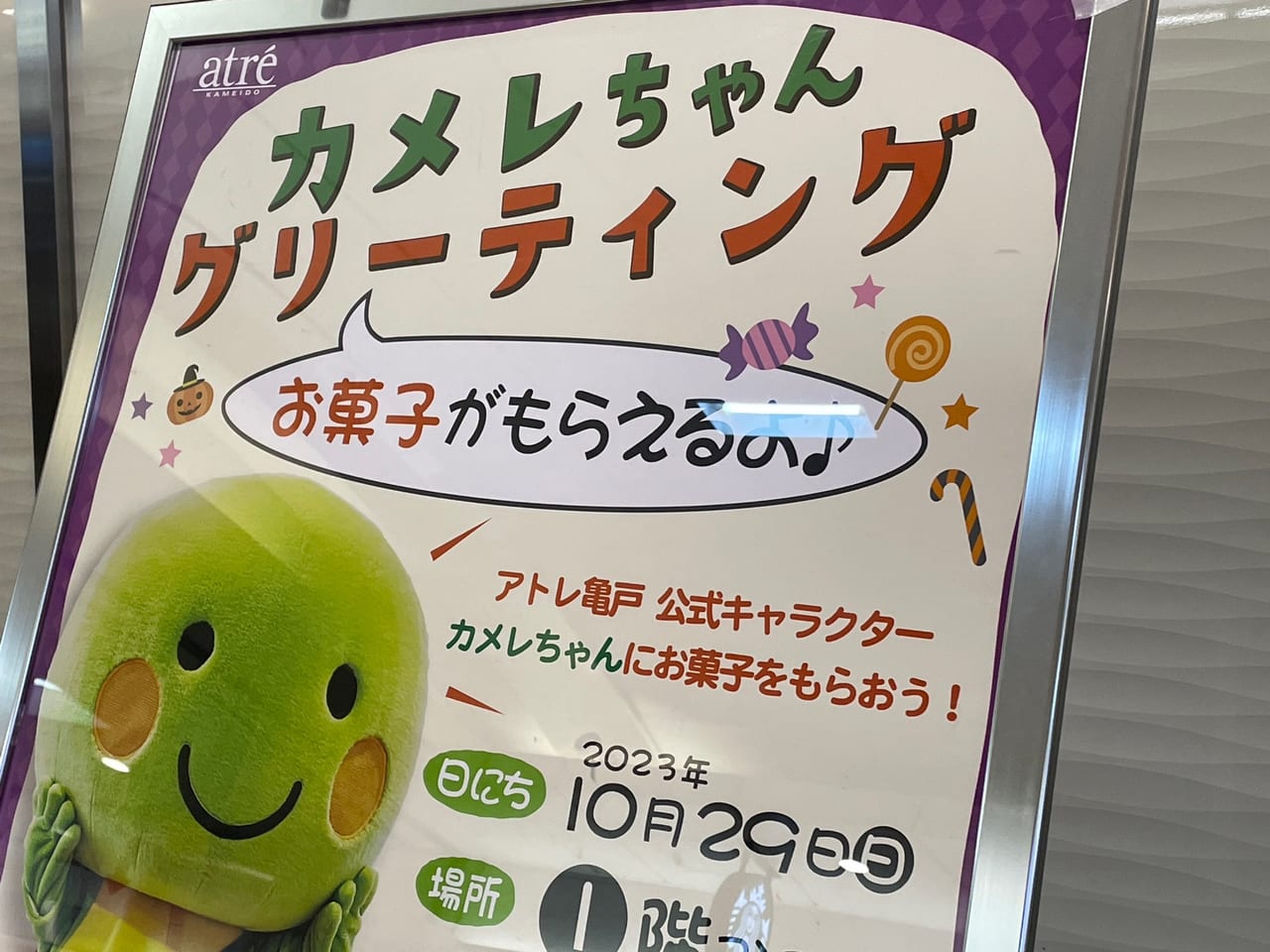 今回、亀戸駅をあるいていると…お子様が喜びそうな「カメレちゃん グリーティング」のポス