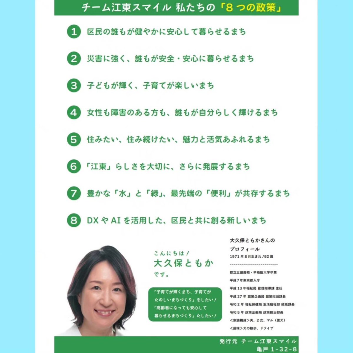 午前中、門前仲町赤札堂前で大久保ともかさんの街頭演説が行われました。