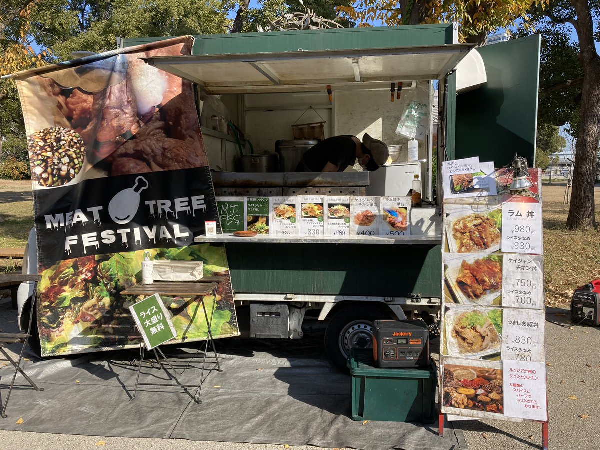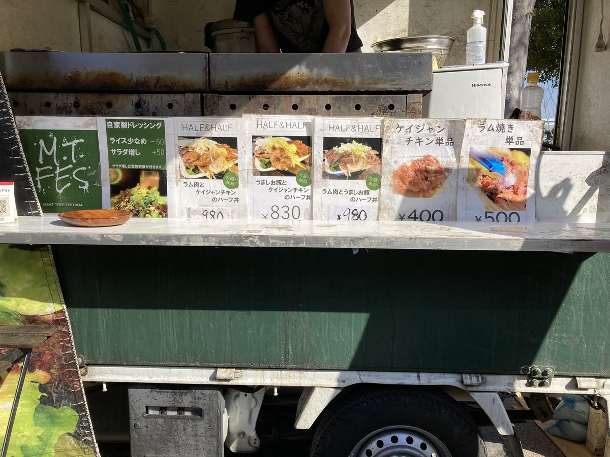 本日はラム肉丼のキッチンカーが出店しております。 ラム肉の他にもうま塩豚丼やケイジャンチキン丼もございます。