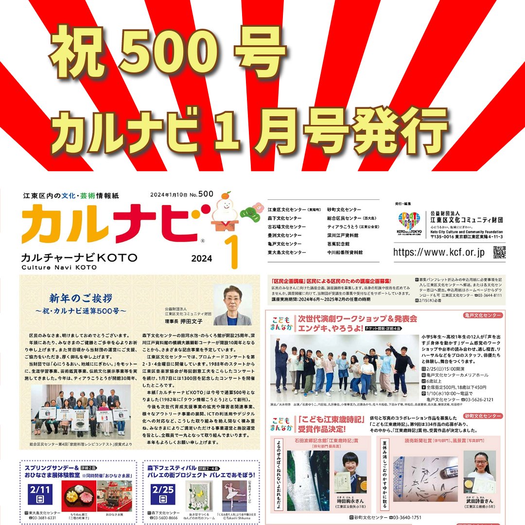 #江東区 #情報紙 #カルナビ #電子版 #チケット発売 #展示会 #江東区文化コミュニティ財団