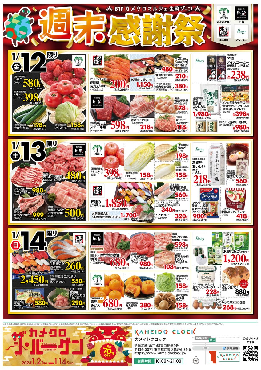 『お肉処牛蔵・本庄鮮魚・フレッシュダイトー・パントリー』各店自慢の商品を取り揃えております🐢