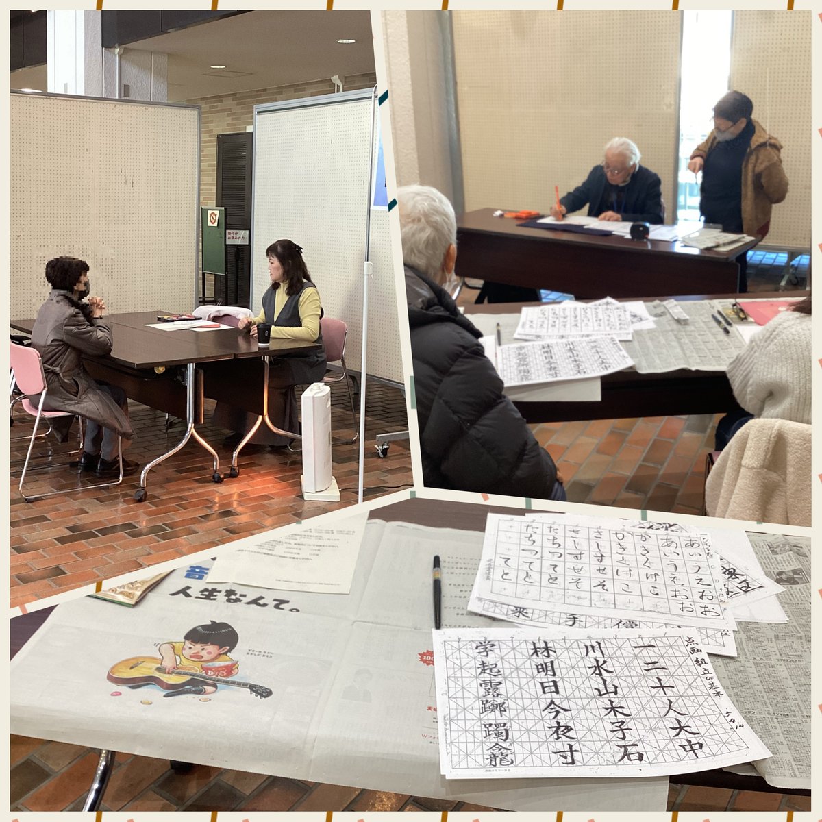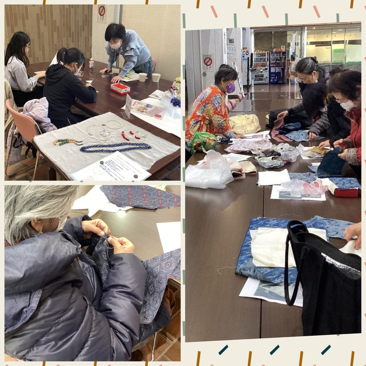 午前のマンツーマンでの英会話学習相談に始まり、午後からは筆ペン書道体験、片手で作るキラキラブレスレット、着物リメイクによるトートバッグ作りと各講師のアイデアで和やかな会となりました。
