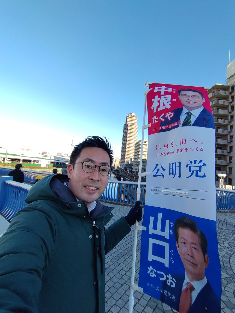 今朝は、小名木川クローバー橋にてあいさつ活動からスタートしました🚩