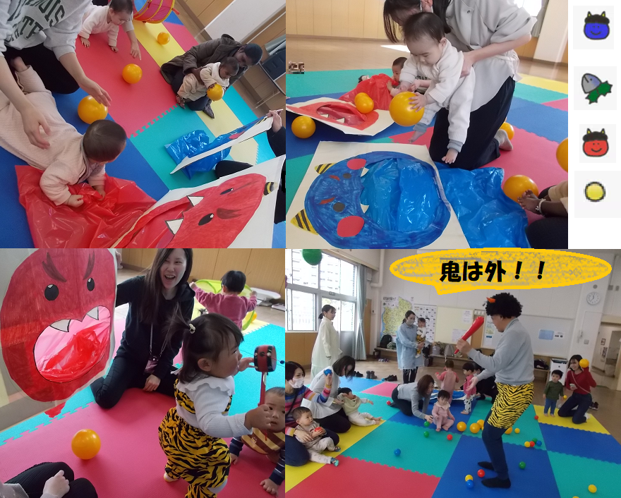 ボールを鬼の的に投げ入れていると、鬼さんが登場👹