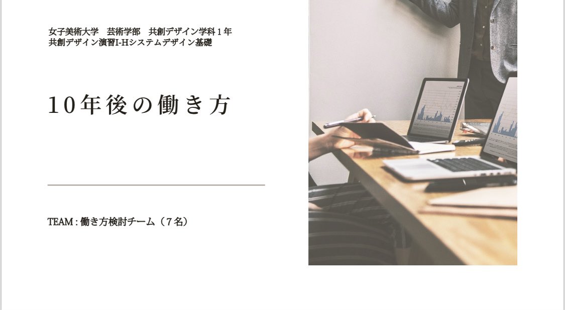 昨日の分科会内で数分いただき、女性の働き方について、女子美術大学1年の授業内の作品(テーマは10年後のデザイン)を紹介させていただきました。