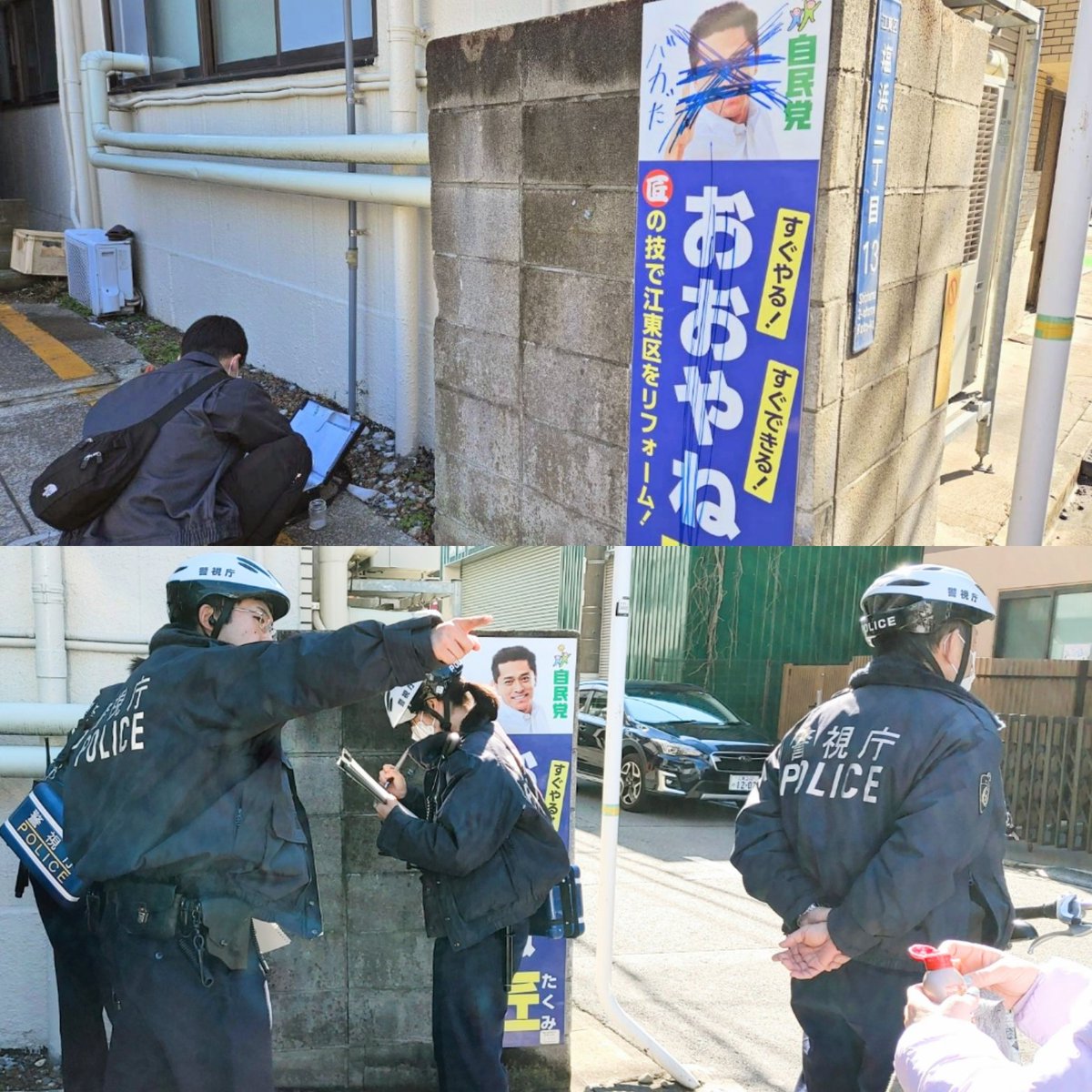 🔴私の事務所看板に落書きが… 地元 #深川警察署 に対応を依頼 警察の皆様に良くして頂きました 本当に頼りになります💪 #塩浜2丁目 #すき家 🟡いくら #自民党 が 多くの批判を受けても この様な犯行には断固戦います とても残念です‼️ #江東区議会議員 #おおやね匠 #江東区議会 #江東区 #大矢根匠