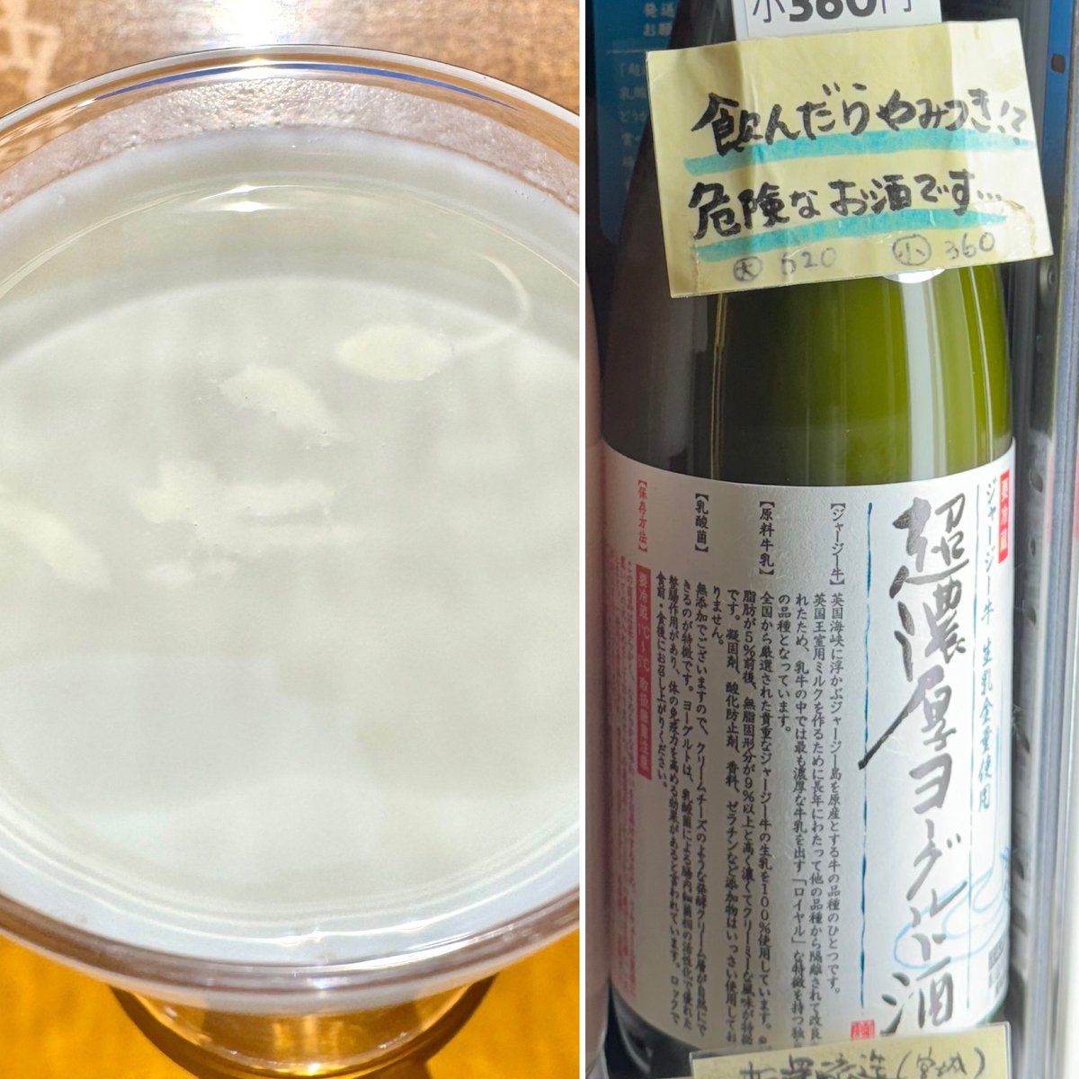 超危険なお酒を折原商店(富岡1-13-11)で発見!こちらはジャパン・フードコレクションで金賞を受賞した、宮城県、新澤醸造店の「超濃厚ヨーグルト酒」。ミルク界の王様ジャージー牛の生乳を使用した濃厚&クリーミーで深いコク、シルクのような舌触り!😋でもしっかりお酒してます!ヤミツキ注意!😎