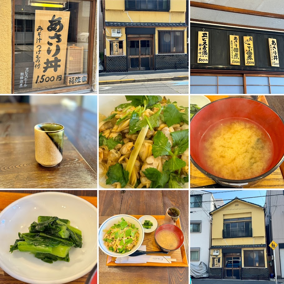 メニューは大粒あさりの深川丼のみ!福佐家(三好2-11-4)あさり丼(1500円)+頭大盛(250円)。納得のいくあさりが入ったときだけ店頭に入荷情報貼紙が出て電話予約が可能になるので簡単には食べることが出来ません😎余計なものが一切入っていない優しい味付けであさりの旨味を堪能できます!😋