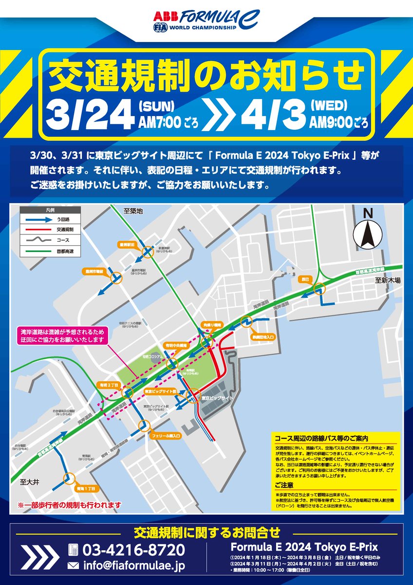 開催に伴い、3/24(日)~4/3(水)にかけて、会場周辺で交通規制が行われます。