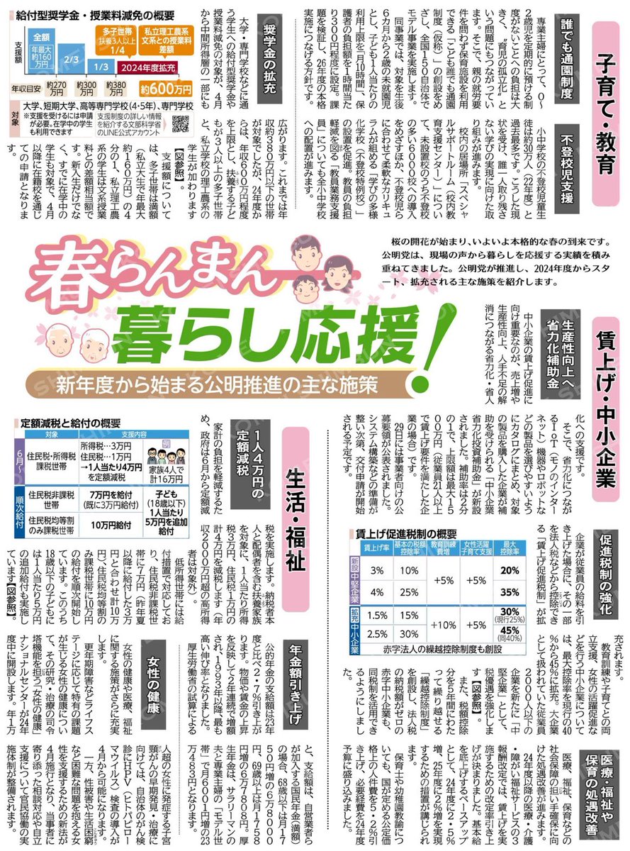 春らんまん暮らし応援!/新年度から始まる公明推進の主な施策 #公明新聞電子版 2024年03月31日付 www.komei.or.jp/newspaper-app/