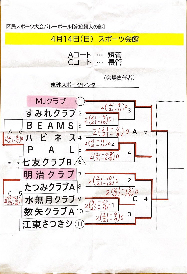 区民スポーツ大会バレーボール(家庭婦人)一日目4/14(日)の結果です 〈決勝トーナメント進出チーム〉 🏐MJクラブ 🏐明治クラブ 🏐TOMクラブ 🏐葵クラブ 残り4チームは、 来週4/21(日)に出揃います‼️※深川SCと東砂SC (バレ美) #バレーボール #江東区