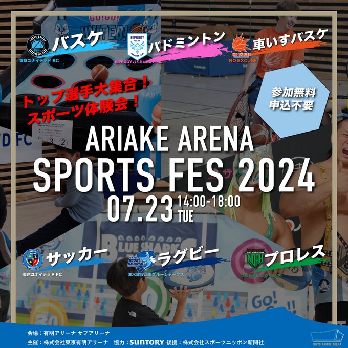 【 #TUBCイベント 】 7月23日(火) -18:00 有明アリーナ 入口:サブアリーナ(Moon River横) 入場料無料(事前申込不要) 田口選手:14:00~15:30 上田選手・竹内AC:15:00~16:30 ユナイト: ~ 複数回出演予定 りなぴー、竹本タクシーさんも登場