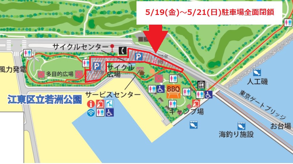 📢お知らせ📢5/19(金)、20(土)、21(日)は区立若洲公園での「METROCK2023(metrock.jp)」開催に伴い、”海釣り施設最寄り駐車場”が利用不可となります。なお、海釣り施設及び釣..