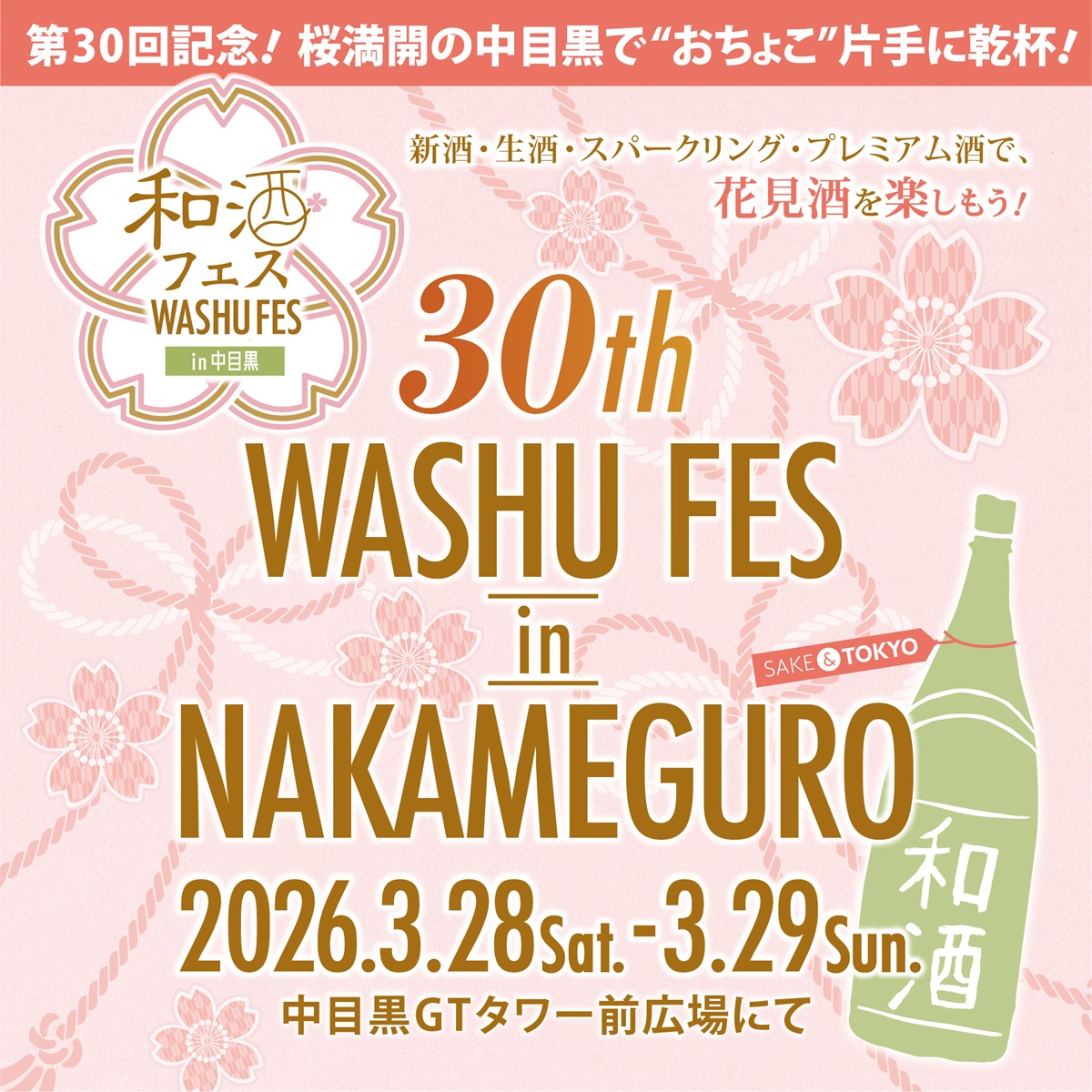 中目黒GTタワー前広場にて年に3回(春・夏・秋)開催されている人気のイベント「第30回和酒フェスin中目黒」が2026年3月28日(土)・29日(日)に開催されることが決定。