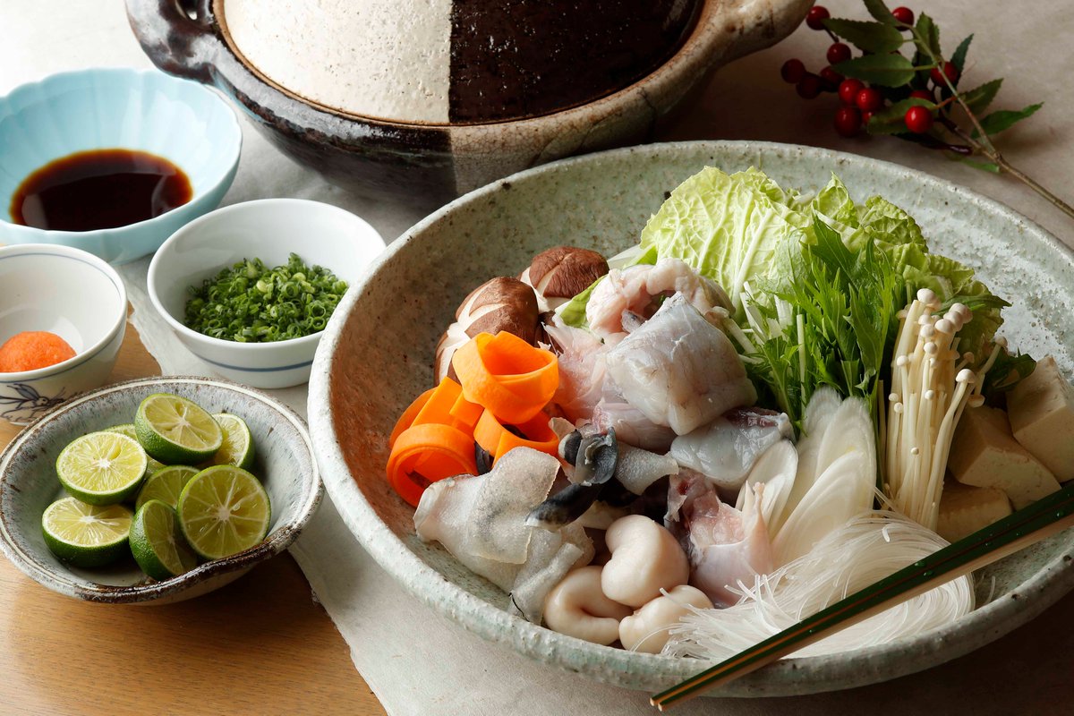 日本料理「舞」では、鮮度抜群の河豚をお楽しみいただく期間限定『冬の河豚会席』をご用意しています。独特の歯ごたえと旨味を際立たせた「ふぐ刺し」や、上質な出汁が味わい深い「てっちり鍋」など、河豚尽くしの冬の美味をご堪能ください。