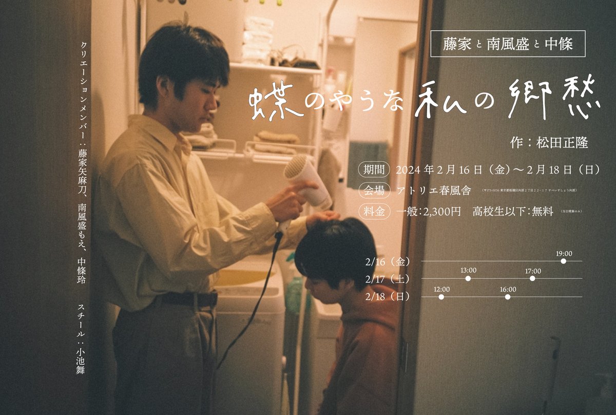 藤家と南風盛と中條『蝶のやうな私の郷愁』が本日19:00に初日を迎えました。