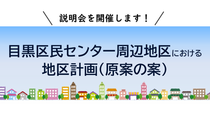 #目黒区民センター周辺地区の地区計画(原案の案)について、説明会と意見募集を行います。【説明会】🗓️3/1(金)18時30分~19時30分📍中小企業センター希望者は当日会場へお越しください。【意見募集..