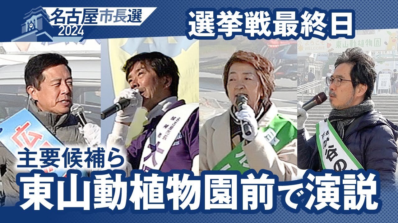 過去最多の7人が立候補した名古屋市長選。選挙戦最終日11月23日の朝、政党推薦を受ける主要候補3人を含む計4人が東山動植物園に駆けつけ、演説した。そこで何を訴えたのか。4人の演説をノーカットでお届けす..