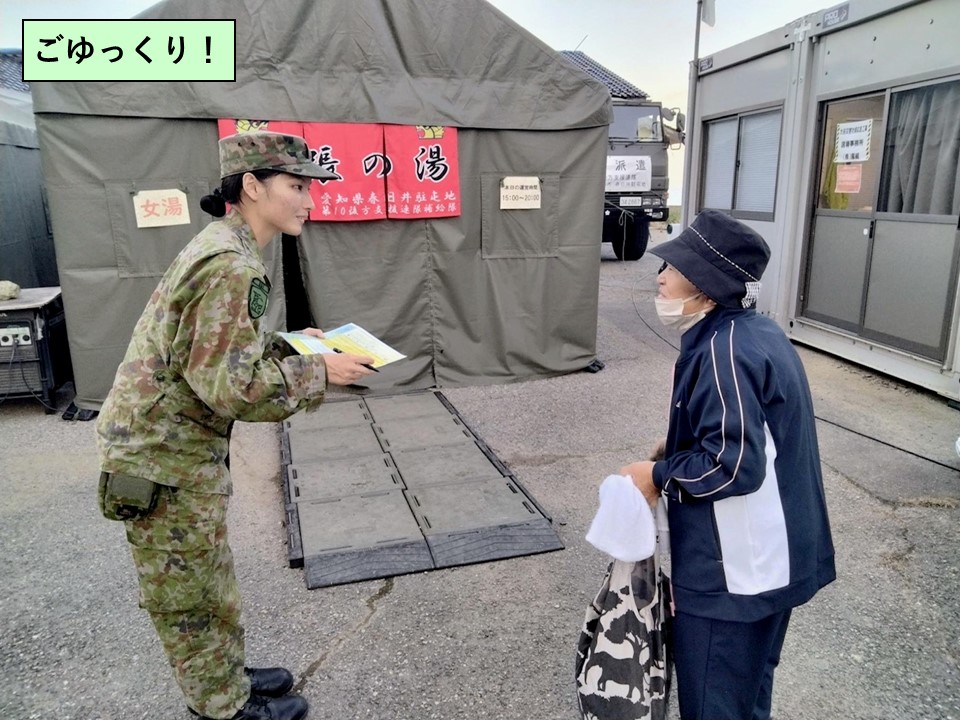 【入浴支援活動】 #33連隊 は 、珠洲市大谷公民館にて入浴支援を実施中 懇切に対応し癒しを提供します。 入浴にぜひ、いらして下さい。 #久居駐屯地 #33連隊 #令和6年奥能登豪雨