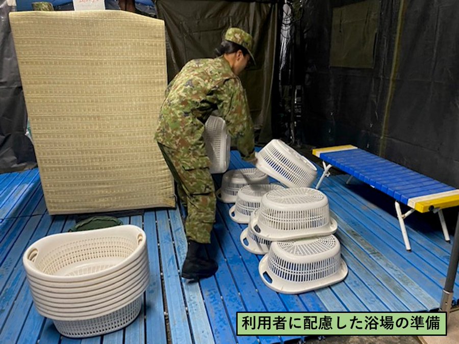 【浴場開設準備】#33連隊は、野外入浴セット2型を活用し入浴支援を実施しています。被災された方々への生活支援のため、隊員は真心をこめて浴場を準備します。#陸上自衛隊#災害派遣#能登半島#第10師団#第..