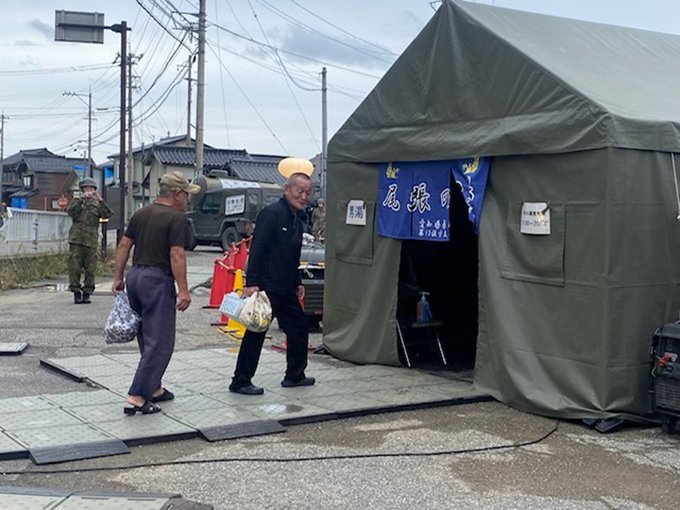 【浴場開設準備】 #33連隊 は、野外入浴セット2型を活用し入浴支援を実施しています。被災された方々への生活支援のため、隊員は真心をこめて浴場を準備します。 #陸上自衛隊 #災害派遣 #能登半島 #第10師団 #第33普通科連隊 #久居駐屯地