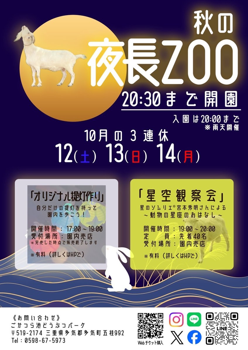 ごかつら池どうぶつパークでナイトZOOが開催オリジナル提灯づくりに加え、秋の星空観察会も実施※いずれも有料。日中とは違う雰囲気のごかつら池どうぶつパークを楽しみませんか?開催日10/12(土)、13日..