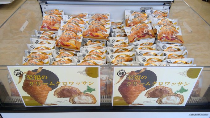 [翠陵店・コンビニフロア]本日デザート企画で至福のクリームクロワッサンが数量限定で入荷しておりますクロワッサンの中には濃厚なクリームがぎっしり!!おやつにもオススメです是非この機会にご賞味ください・カ..
