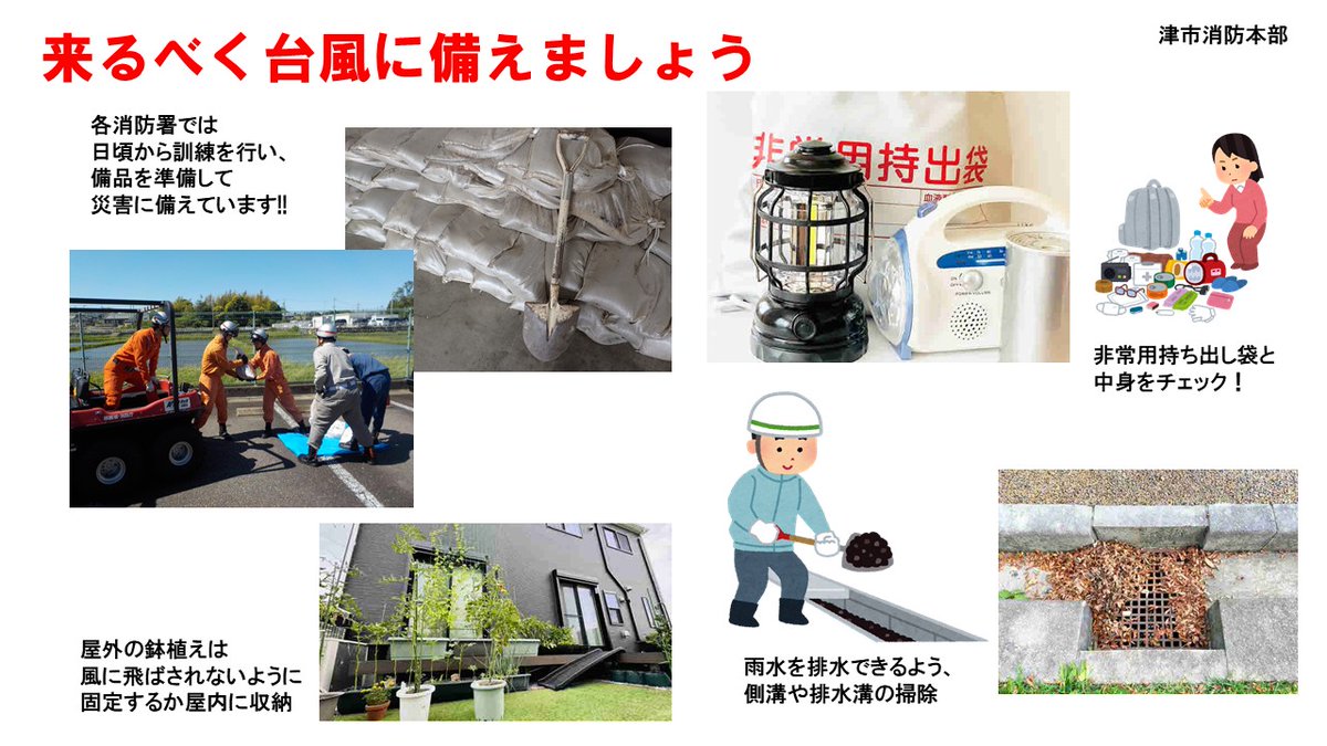 美杉分署では台風シーズンに備え、土のうを作成するなど災害対応の準備を進めています。皆さんも非常用持ち出し袋の確認、風に飛ばされそうな物の固定または室内への収納、側溝や排水溝の掃除など災害への備えをお願..