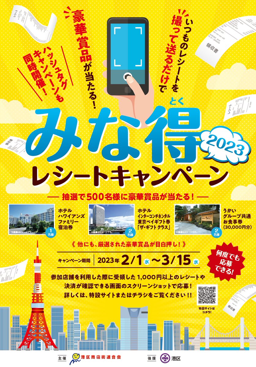 フォロワー数が4000人となり、#港区 区政情報発信にも引き続き全力で✊ 港区議会公明党の推進で第2弾開催中の、みな得レシートキャンペーンが好評🧾 港区プレミアム付き電子商品券が使える店舗の多くが、対象📲 3月から子ども1人5万円電子商品券の配布が開始するので、使えるお店の拡大をさらに👩👧👦