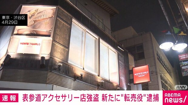 事件のあった店と同じ渋谷区神宮前にあるブランド買取店で被害品を売却しようとしたとして、20代の男がけさ逮捕された。男は「転売役」とみられ、取り調べに対し容疑をおおむね認めているという。