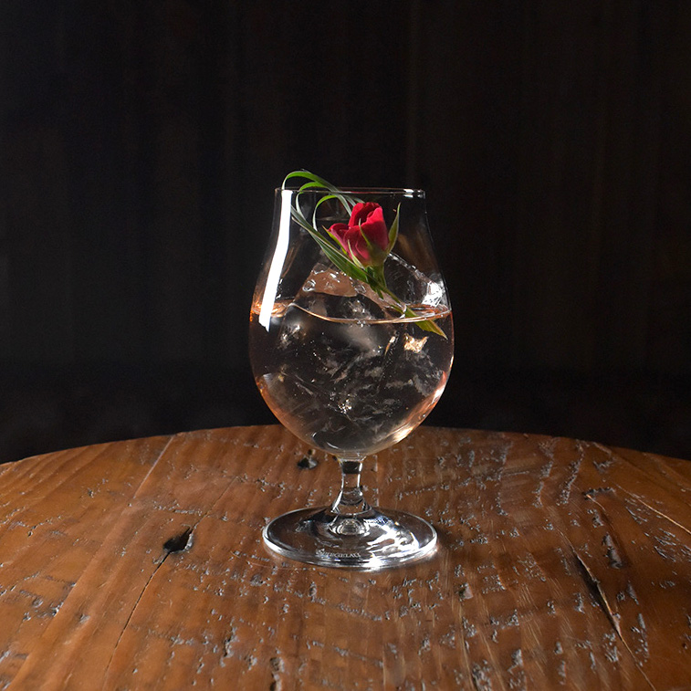 【Artist Cocktail:チコ&ザ・ジプシーズ】フレンチウイスキーとプロヴァンス地方のロゼワインに洋梨とバラの香りを溶け込ませ、ハーバルトニックで仕上げた一杯。複雑な香りが印象的なスペシャルカクテル。“BAILA” (Bartender:Hodaka Maeda)→x.gd/Mv3ix