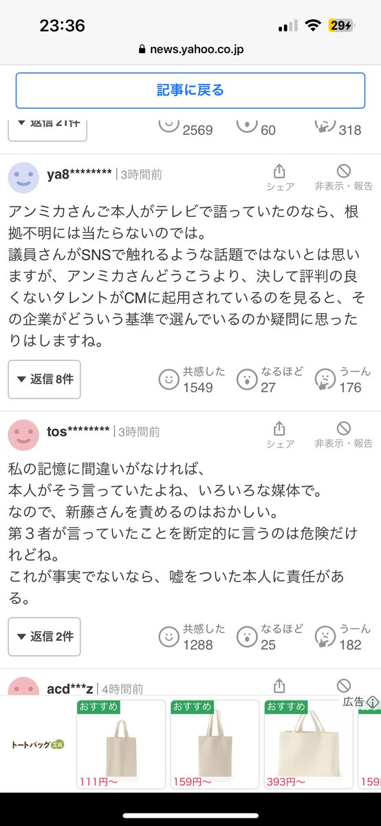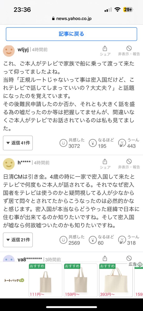 ヤフコメでは記事に対する疑問の声が上に出てくるよ〜!スクショして載せるねー!