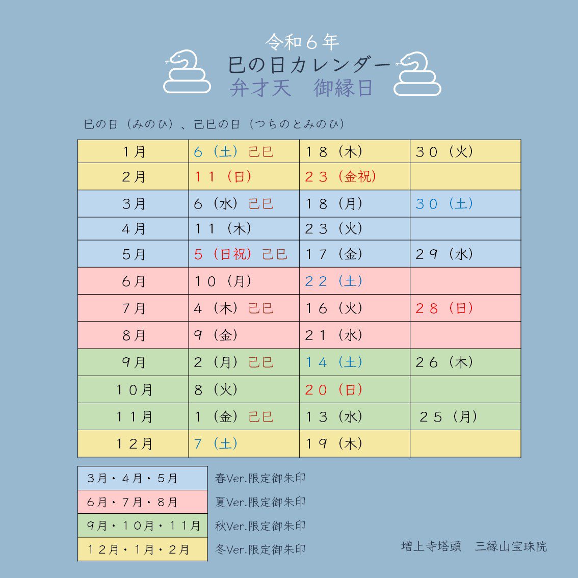 来年辰年の巳の日カレンダーをご案内いたします🐍🐲