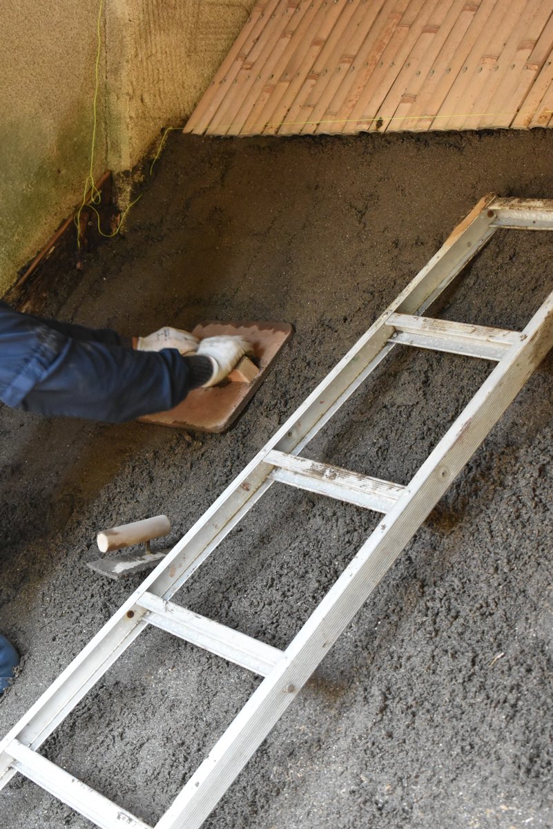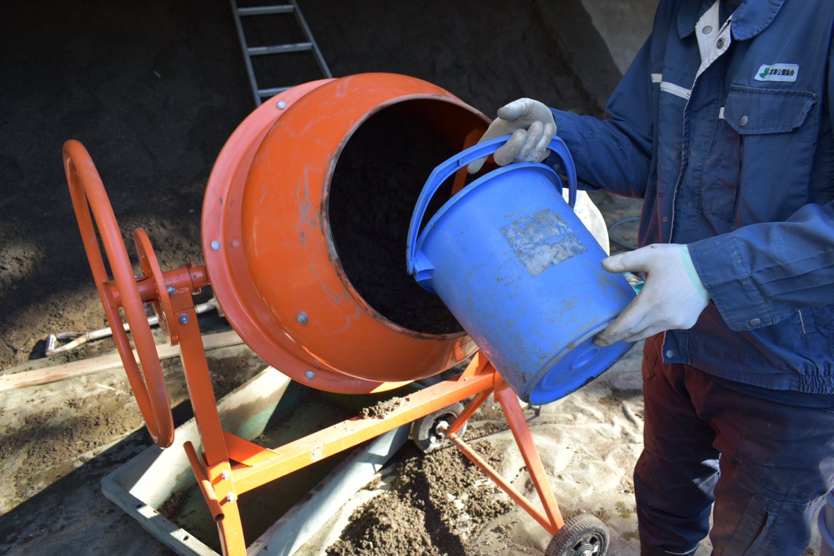 写真は的を置く安土を作るため機械で砂と大鋸屑(おがくず)を均一に混ぜている様子。 もう1枚はコテを使い安土の面をならしています。 地道な作業ですが弓道場の安全や美しさを保つためには欠かせません。弓道場休止期間の詳細→www.tokyo-park.or.jp/announc..